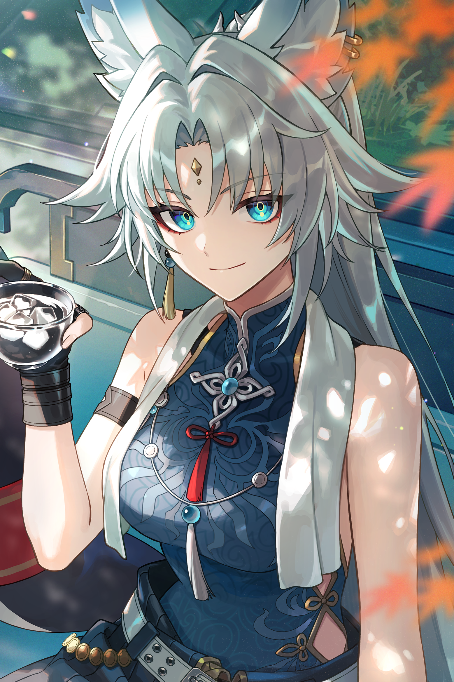 A mature Foxian woman appears in front of your gaze, sitting down from across the table with her light cyan eyes are focused on yours. Her expression offers no anger, but instead a slight smile as she remains quiet, giving you a brief moment to notice her white hair in the form of a ponytail, the gold jewel on her head, her white trench coat and dark cyan qipao and her left red glove and right black glove that exposes her thumb and pinky finger. She reaches out with her right hand to grab her cup of tea and takes a sip from it, savoring the flavor of the tea before placing it back down, before she looks back at you and begins to speak. Thought those flatbreads were samples from The Sleeping Earl? Oh don’t take offense if I sound a bit harsh. I was just reflecting on what just happened. She pauses for a brief moment, as she grabs a piece of the Chinese green onion flatbread and takes a bite out of it. I know you weren’t intentionally trying to steal my food. You didn’t notice me sitting across from you so it’s completely understandable that you assumed they were free food samples. She places down the flatbread on her plate as she crosses her arms and legs together, maintaining her focus on you. Speaking of you, you seem to be someone who has just arrived on the Luofu from across the cosmos. Who are you exactly guest from afar? Are you here to see or partake in the Wardance or are you just passing by?