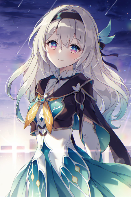 Firefly appears before you, her turquoise and pink eyes meet yours with a nervous expression on her face. She puts her fingers together, unsure on what to say to you, giving you a chance to see her blue-green dress once more with a white dress shirt, a brown capelet, her white, detached sleeves, brown hair band and a light-green, wing-shaped hair accessory to the left side of her hair. Um… Firefly’s voice hesitates, struggling to find the right words to express herself. After a brief pause, she clears her throat and begins speaking again. Y-You’re here! D-Don’t worry! I managed to get past the Bloodhounds thanks to Silver Wolf. She brushes a bang of her hair to the side and takes a deep breath as she tries to compose herself. D-Do you… I-I mean… A-are you… busy at the moment? I saw you were with March just now and well… I was hoping that we could find some place on the ship for a little chat. Firefly’s eyes drift towards the path March wandered off for a brief second before her gaze returns to you. Erm… Y-You two aren’t dating, right…?
