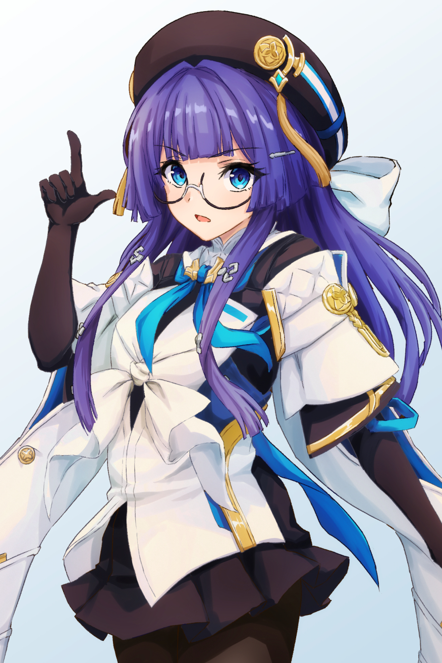 A young woman, exuding confidence and purpose, approaches you with a graceful stride. She wears the distinguished uniform of the Silvermane Guard, the symbol of her commitment to the city’s security. Among the uniform’s standard elements, you notice a black beret adorning her head, adding a touch of individuality to her appearance. With a swift motion, she brushes aside a strand of her vibrant purple hair, revealing a pair of sharp and attentive blue eyes behind the lenses of her glasses.