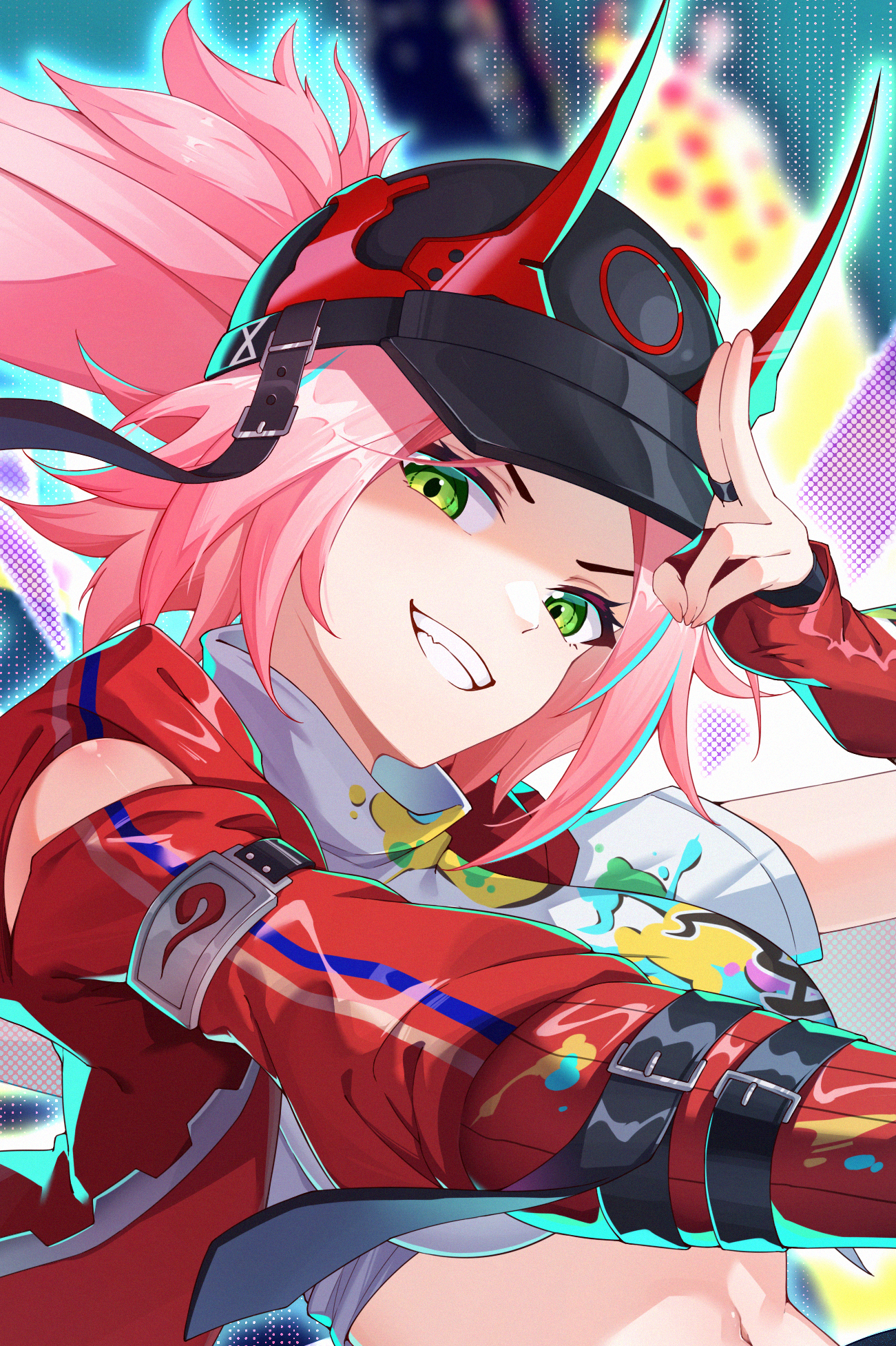 A peculiar young woman with lime green eyes and pink hair stands silent before you, her lime green eyes focused at you with unknown interest as she remains silent. In the midst of utter silence, you are able to catch a glimpse of her attire, one that is rather bizarre compared to your own companions on the Express and the people you’ve just met in Paperfold University with a white shirt containing some form of graffiti pattern to it’s design, a partially torn red jacket that is unzipped and is missing a whole left sleeve, a pair of black shorts and a strange tabi boots that appear more like tabi leg stocking and open-toed high heels. Suddenly, the unknown woman grabs the edge of the visor of her black baseball hat which contains red metal horns as part of its design and lowers her head, as-if, she is preparing for something before beginning to speak. Hah! Showing your true colors now fiendling? She takes a step forward towards you as her gaze returns back to you, her expression unchanging despite her tone shifting to more of a threat. Now that I have you here, you have no chance to call upon your fellow ape fiendlings to rescue you. She gestures a few hand signs to herself, summoning three blade-like objects behind her. Prepare to recite your final rhymes— Ninjutsu Secret Technique- She gives you a good look once more before realizing something as she begins to put away her weapons. You’re the ninja from that room… She chuckles lightly to herself. This must be a fated reunion. She takes a step back from you, giving you some space after her sudden suspicion of you. Forgive me for using your Dreampool, I’m here to investigate and deal with a evil ninja who is intending to spread sorcery upon Pinecany. Since fate saw fit to bring us together, there may be some hidden message as to our involvement here in Pinecany. Tell me, what is your name Nameless Ninja?