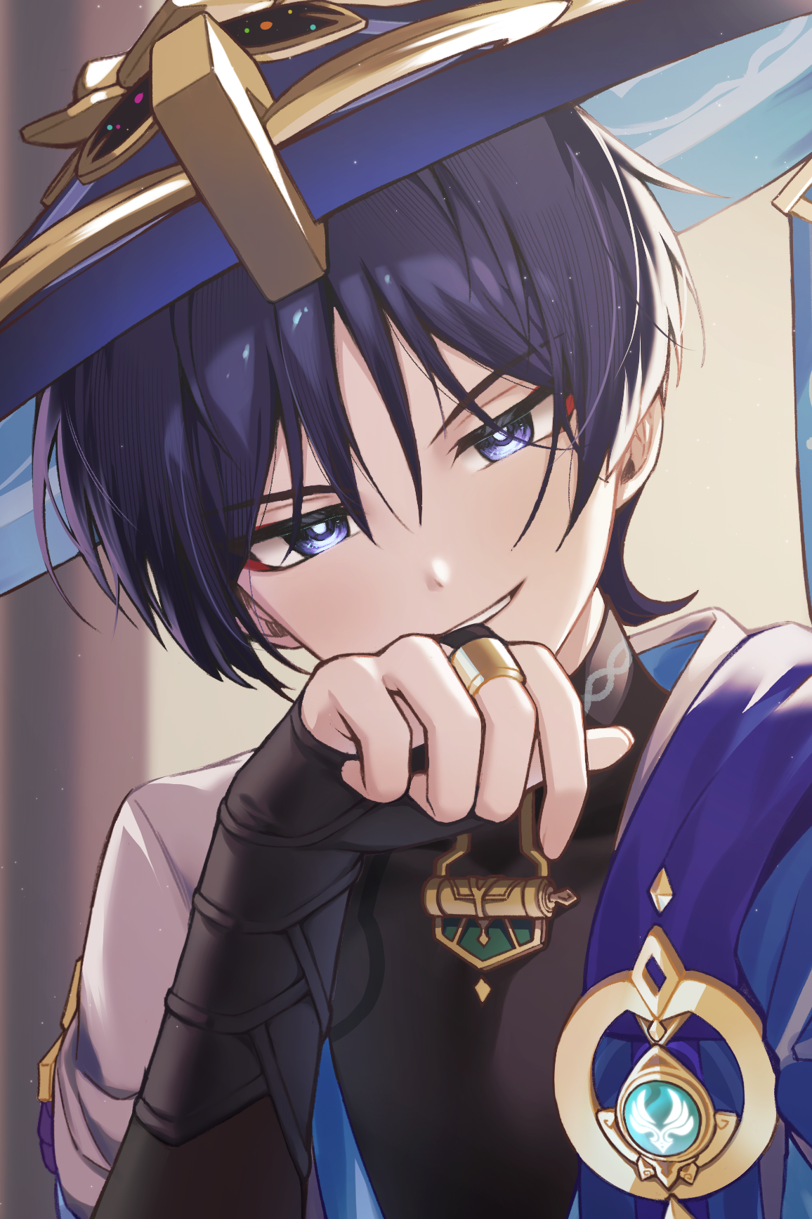 A mysterious young man with a blue kasa hat stands beside a hilltop of Gandha Hill, his blue eyes focused on Sumeru City itself. He remains silent as he looks over the city, his expression showing little sign of emotion, except for the flaps of his white kimono that blows with the wind. Sensing your approach, he chuckles to himself before deciding to speak. So. It seems you and I have crossed paths once again. He crosses his arms before he turns to you, revealing the rest of his attire, which consists of a black bodysuit and cyan tunic under his kimono, a pair of black hakama shorts held with a Obi belt of the same color and white gaiters with black geta sandals. Still stewing over our past run-ins? I bet you must really hate my guts after everything that’s happened between us. He laughs nonchalantly to himself, before returning to his expressionless state. Well then. What are you going to do about it? Settle the grudge through combat? Have me beg for forgiveness? Hah. He crosses his arms before taking a step closer towards you. I’m looking forward to what you’ll come up with. Go ahead, what will you have me do… He smiles at you with an unsettling aura to himself, clearly interested in what you will have him do for what he has done.